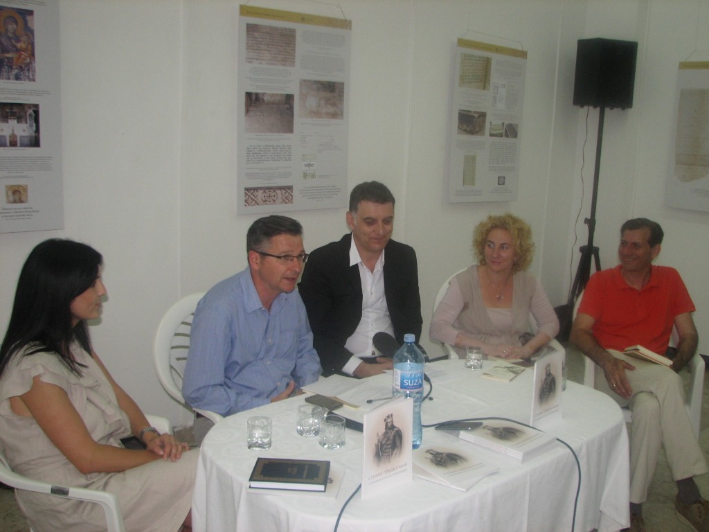 Tim povodom gosti hercegnovske biblioteke bili su Ana Gvozdenović i Dejan Aleksić, urednici izdavačke djelatnosti i bibliotekarka Ivana Hrenko, koautor izložbe Stefan Prvovenčani u književnosti i istoriografiji.